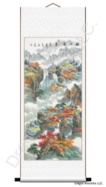 Looking at this Chinese landscape painting, you will be immediately attracted by the magnificent waterfalls, your mind lost in the beautiful scenery of southern China.