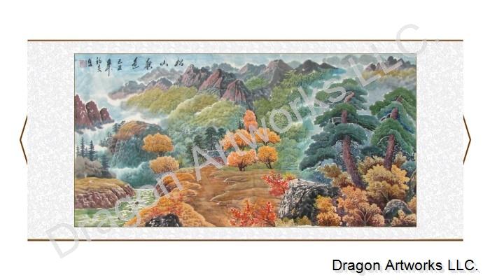 Chinese Landscape Painting Scroll of Pine Mountain in Autumn