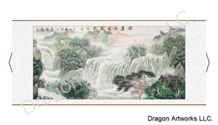 The title of this Chinese painting means the source of water from far distance flows very long and spring spit jade.
