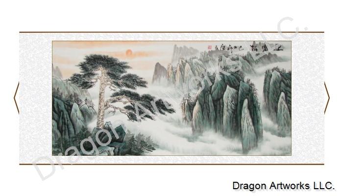 This landscape painting typically depicts the guest-greeting pine by adopt the elements like the pine trees, the mountain peaks, the sea of the clouds and the sun. Welcome pine tree as a symbol of the Chinese people and the friendship of the peoples of the world has long been famous. There is one hug welcome pine painting in the Great Hall. In front of the welcome pine, the Chinese national leaders have seen countless friendly envoy, forged a profound friendship with the peoples of the world.