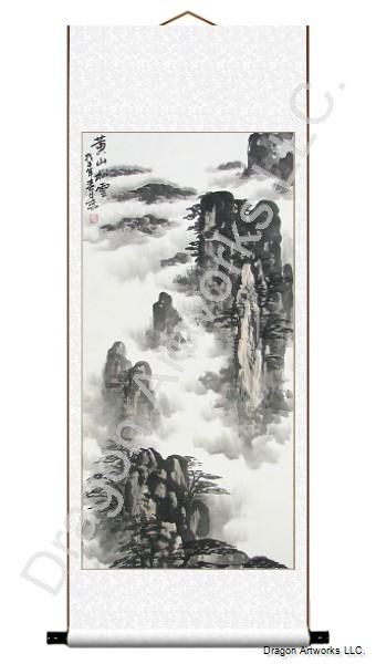 In Chinese culture, Pine represents the strong and unyielding, not afraid of difficulties. Pine is alone, integrity, simplicity, evergreen and not afraid of cold. Pine is a spirit of being strong. It is full of pine trees in yellow mountain. Yellow mountain is pine spirit in Chinese artists eyes. Keep this Chinese painting and get the spirit, then everything is possible for you. The title of this Chinese landscape painting means the yellow mountain pine clouds.