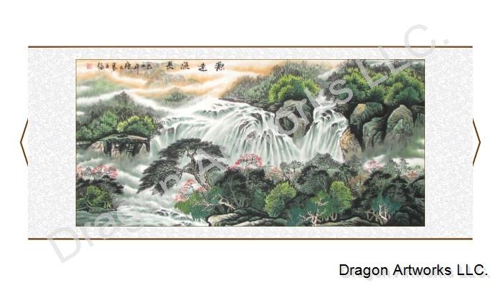 Serene Chinese Landscape Painting of Waterfalls