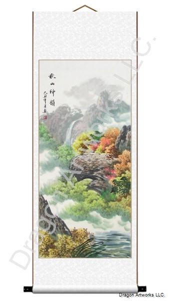 The title of this Chinese landscape painting means charming mountain in autumn.